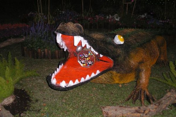 大安森林公園佈置成"樂園"的主題,將花卉和綠色植物做成各式各樣的造景,